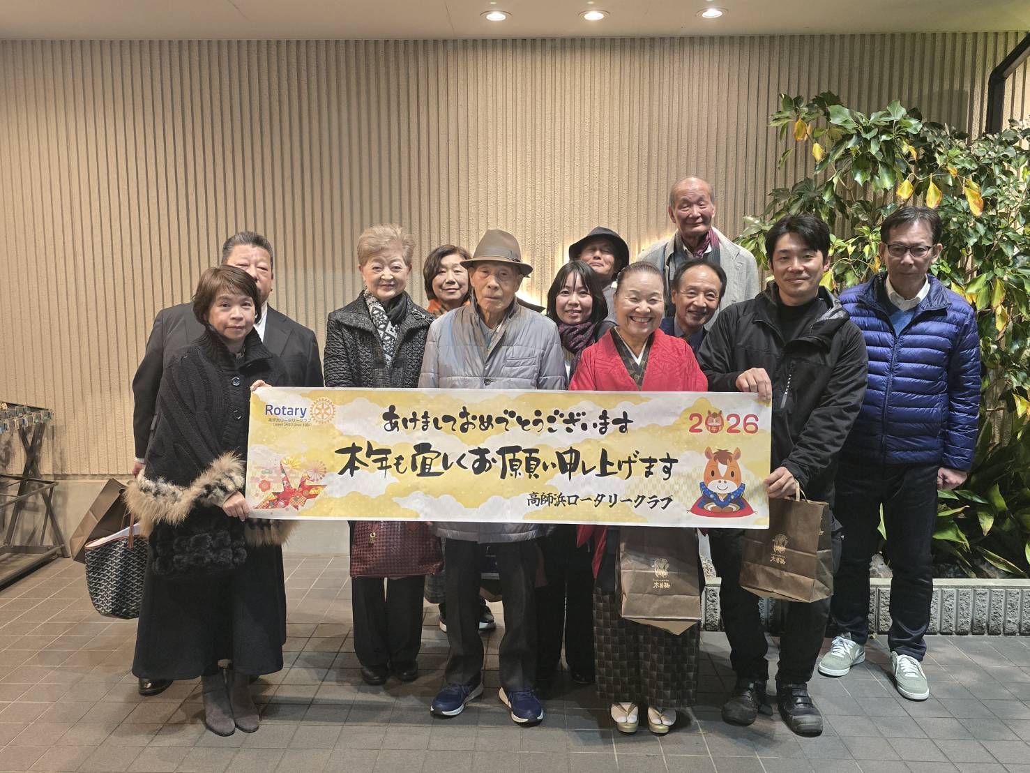 新年あけましておめでとうございます。 2025-2026年度 2026.01.01 旧年中は高師浜ロータリークラブの活動に多大なるご理解とご協力を賜り、心より御礼申し上げます。 本年も「奉仕の心」を胸に、地域社会の発展と会員相互の親睦向上に努めてまいります。 皆さまにとりまして、健やかで実り多い一年となりますようお祈り申し上げます。 本年もどうぞよろしくお願い申し上げます。